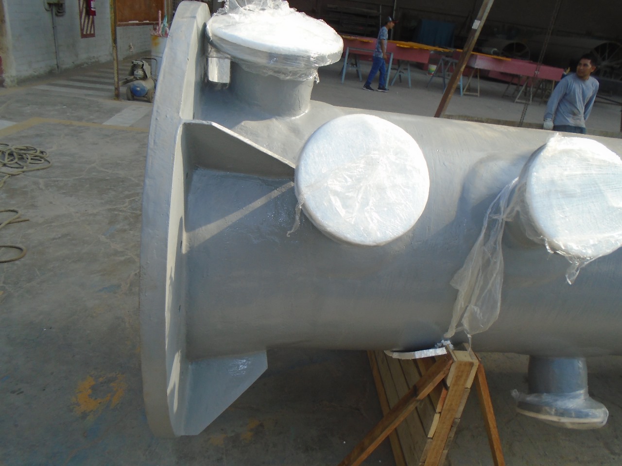 Suministro de una columna de FRP cilíndrico vertical de 2.00 m³, de 0.60 m de diámetro interior y 8.00 m de altura total, con liner interno de Polipropileno